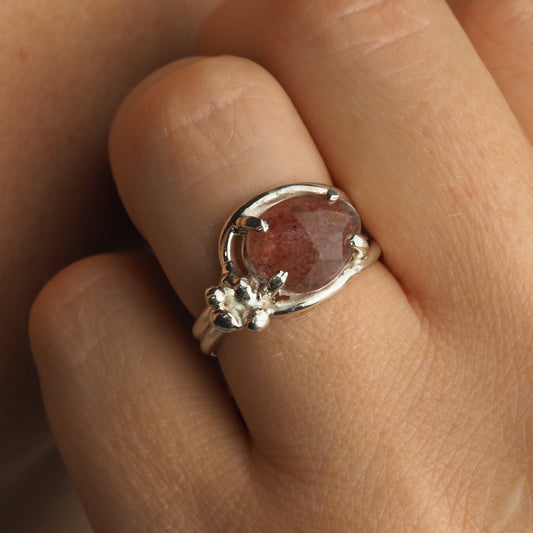 Asymmetrical Silver Cherry Quartz Ring - Rose Cut Pear Shape