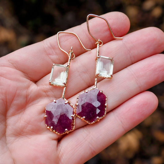 Asymmetrical Silver Cherry Quartz Ring - Rose Cut Pear Shape
