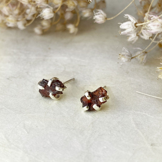 Raw Garnet Silver Studs