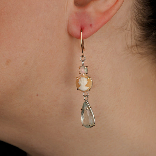 14K Rose Gold Spotted Rose Quartz Chain Link Earrings