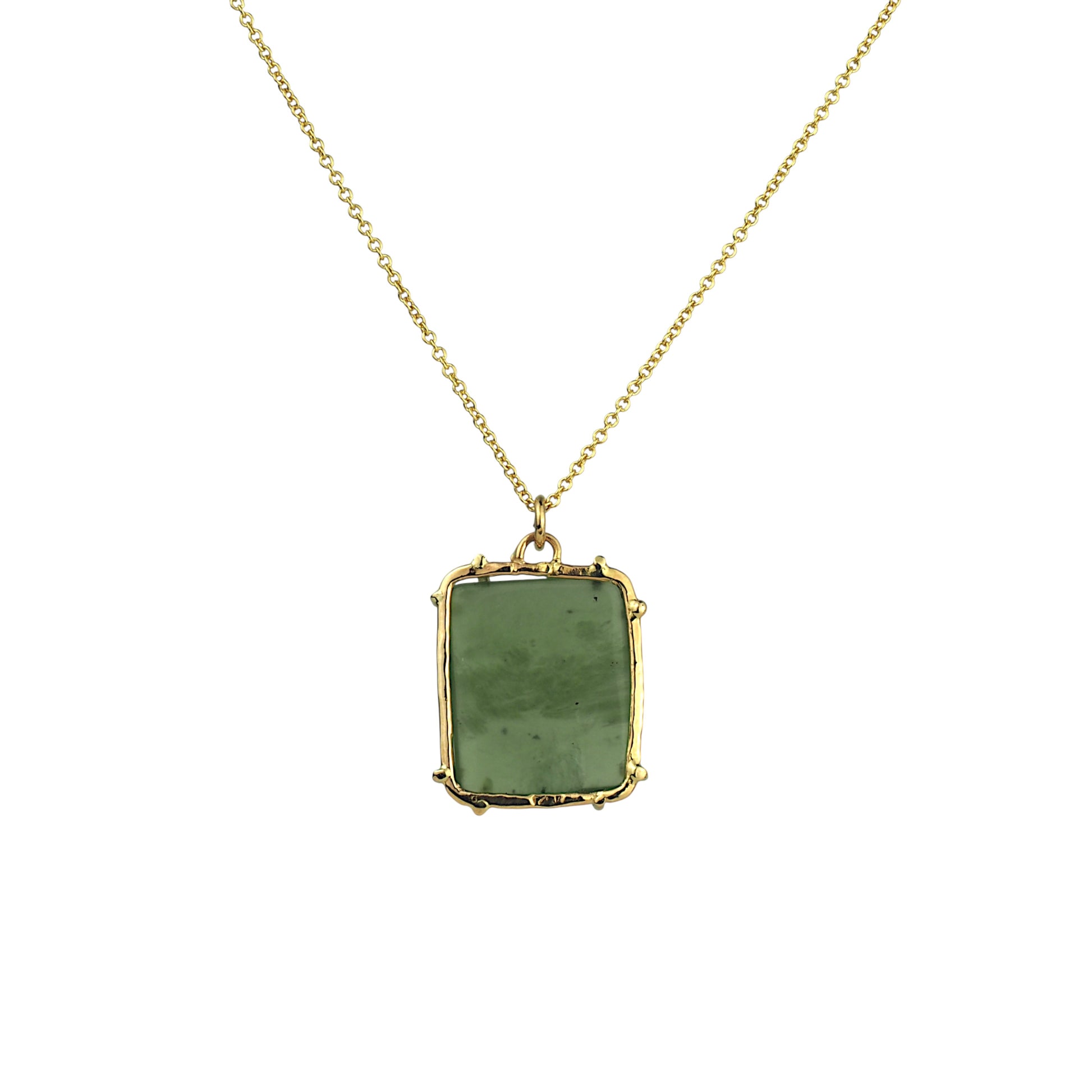 I hand-selected this rectangular cabochon serpentine for its rich, soothing green — so close to jade that even gemologists sometimes have to look twice. This stone has just enough character — a touch of natural “pepper,” a few delicate mineral flecks — to remind you that it’s straight from the earth.