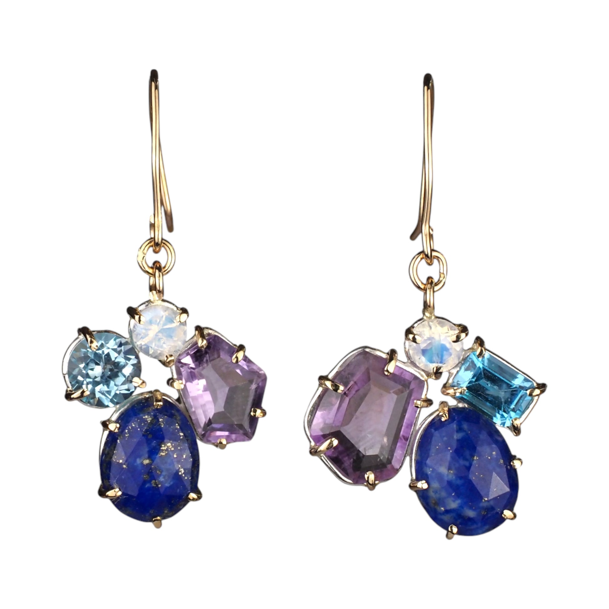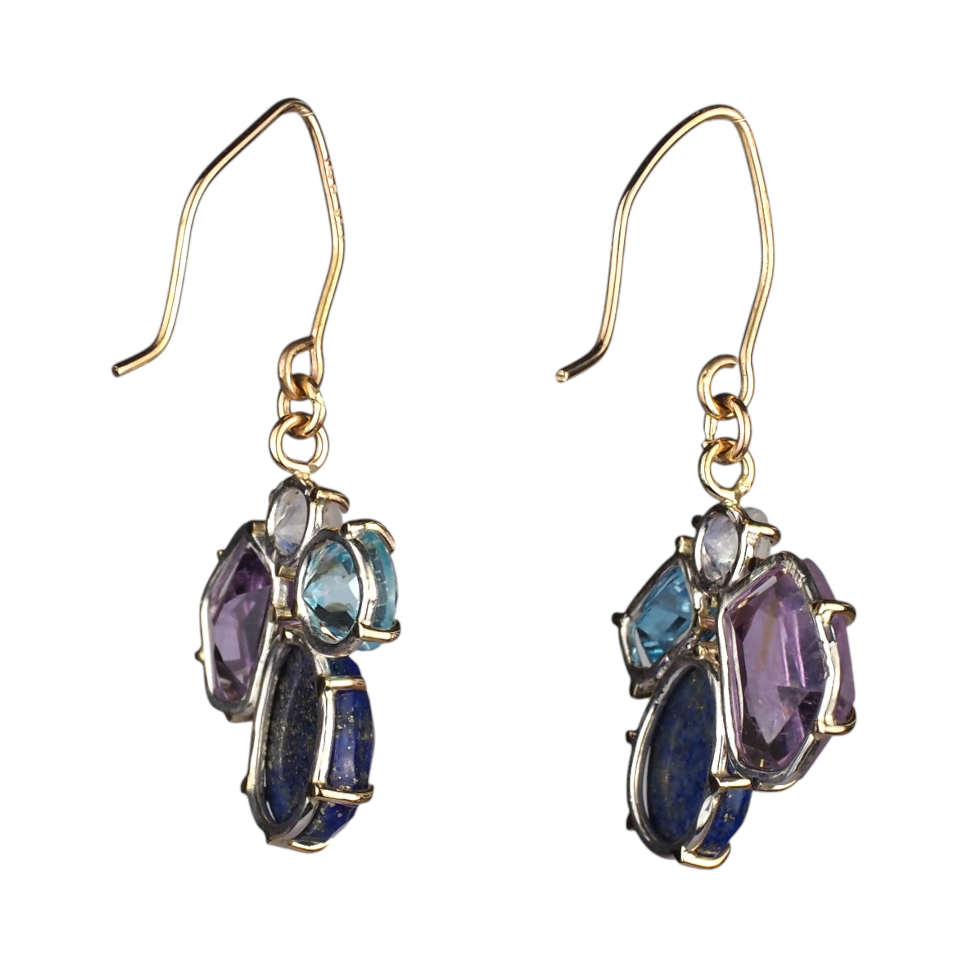 The entire piece is set in solid 14k yellow gold with sterling silver stone seats to brighten each gem without changing their character. The earrings measure about 1.5 inches long, making them a perfect everyday-statement size: refined, noticeable, but incredibly easy and comfortable to wear.